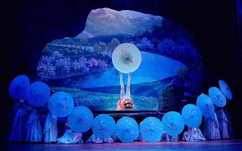 After the completion of the Grand Theatre in 2008, a large-scale acrobatic play called "Dunhuang Goddess" is performed every year during the peak tourist season. The Goddess of Dunhuang is a large-scale acrobatic play created by the Gansu Acrobatic Troupe and the Dunhuang Acrobatic Arts Song and Dance Theater with the theme of the Mogao Grottoes of Dunhuang mural story, which integrates singing and dancing, music, magic, acrobatics, and martial arts. It tells the story of the beautiful and brave deer lady who went through hardships and spared no effort to benefit mankind.