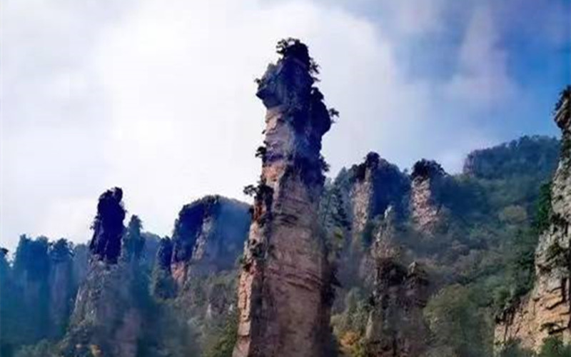 Tianzi Peak, with an altitude of 1262.5 meters, is one of the highest peaks in Zhangjiajie. The peak looks like a great man sitting there, wearing iron armor and holding an arrow in his right hand. His thick eyebrows were raised and his eyes glared ahead, as if he was about to command a thousand troops and horses to embark on a major battle. This image is known as the legendary Emperor Xiang, hence it is named "Tianzi Peak". And it is also known as the "King of Wuling Mountainous" due to its majestic momentum. Surrounded by peaks and shrouded in clouds, Tianzi Peak offers a panoramic and close-up view, as well as a panoramic view of other strange peaks and rocks in Zhangjiajie.