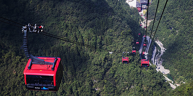 Tianmen Mountain Express Cableway runs from the entrance gate of the Tianmen Mountain Scenic Area to the vicinity of Tianmen Cave Square. With a total length of 1209 meters, it needs a running time of only 4 minutes.