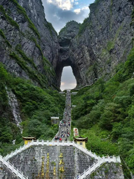 Under the Tianmen Cave it is the 999 Steps Stairs. Here, visitors may need to walk up or down the 999 steps to reach or go away the cave, it will be tried but lucky, because '9' is the biggest number in Chinese culture and 999 means an eternal/forever life. The highlight of Tianmen Cave is the mystic views of fog and cloud. Watching the changing of clouds and fogs, the feeling is like traveling in a place with profound questions asked by the god.
