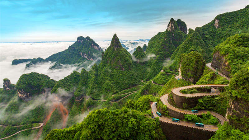 This place has absorbed the essence from the nature for thousands years, therefore visiting the holy temple on the mountain – Tianmen Mountain Temple has become a popular way to pray for a safe and healthy life. Particularly, the four scenery spots, such as Tianmen Cave, Tianmen Mountain Cableway, Bongsai Garden, Heaven-linking Avenue, are regarded as the "Four Wonders of Tianmen Mountain".
