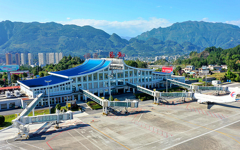 The T1 terminal of Enshi Xujiaping International Airport covers an area of 5319 square meters, and the T2 terminal covers an area of 10000 square meters; There are 6 C-class stands on the apron of the civil aviation station, including 3 bridge stands; The runway is 2600 meters long and 45 meters wide, capable of accommodating an annual passenger throughput of 1.5 million, a cargo and mail throughput of 2500 tons, and 17000 aircraft takeoffs and landings.