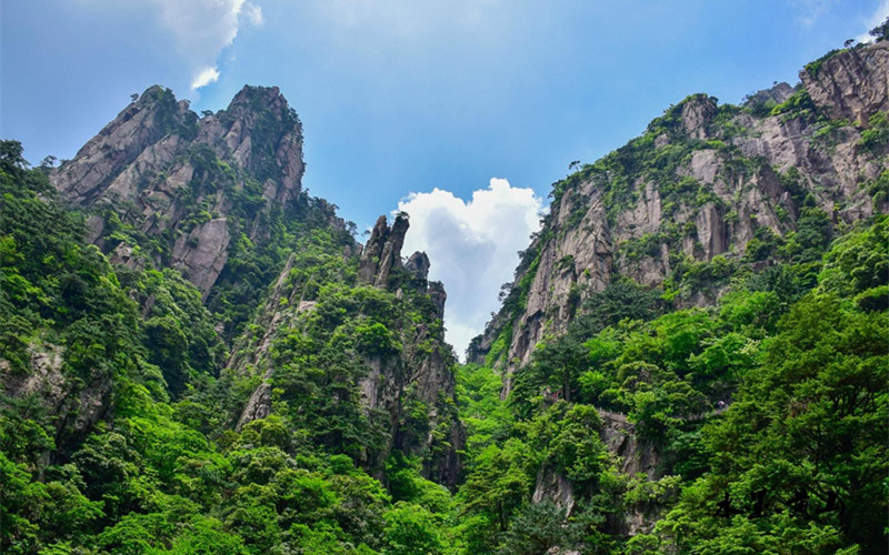 The front mountain refers to the climbing route from Ciguang Pavilion to Yuping Tower on the mountaintop (you can take the Yuping Cableway directly), as well as the Lianhua Peak and Tiandu Peak areas on the mountaintop. The scenery of the front mountain is grand to make tourists very suitable for taking a cableway to overlook. The peak Lianhua Peak and the other main peak Tiandu Peak are both located here (alternating between the two peaks), and classic attractions such as Welcoming Pine, Crucian Carp Back, Hundred Step Ladder, One Line Sky,etc. are also available.