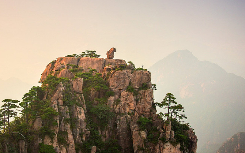 Monkey watching the sea, a spot in Mount Huangshan, refers to a skillful stone sitting on a flat top peak in the north of Lion Peak, like a monkey squatting, watching the sea of clouds rise and fall. It is called "Monkey watching the sea".